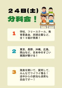 今回も、「ごちゃまぜ分科会」「子どもの実践発表」「アワード表彰式」「子どもの本音トーク」「スペシャル教育座談会」といったスーパーなプログラムで、みなさんといっしょにこれからの教育について、熱く語り合いましょう!